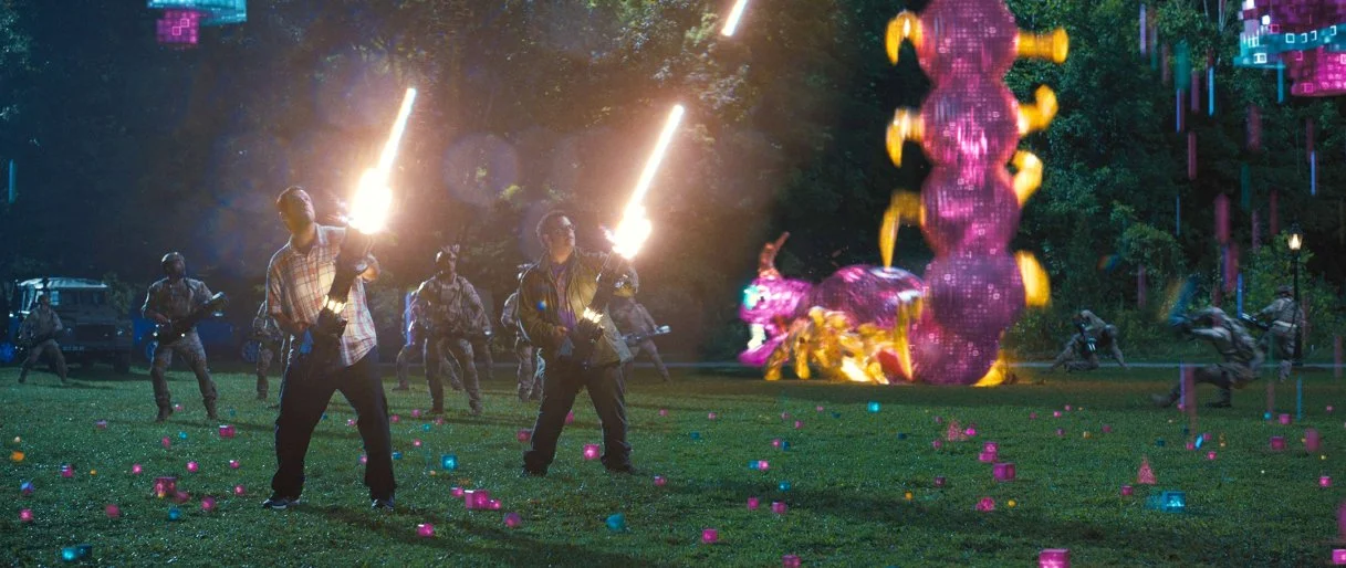The digital voxel/pixels attacking the world were nice to look at. Literally the only reason I sat through the entirety of the movie. It was unique. The pixels destroying everything into pixels was awesome. My favorite scene being the centipede fight where one leaks into the city and runs rampant. But of course, its short lived. There are not enough movies using CGI as an artistic style instead of a replacement for something real. Imagine more films with CGI with an obvious art style instead of just photorealism. It would be nice. And oddly, I feel like this film has that. So props to Digital Domains for doing amazing work.